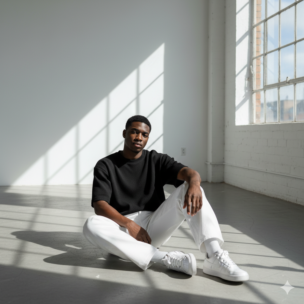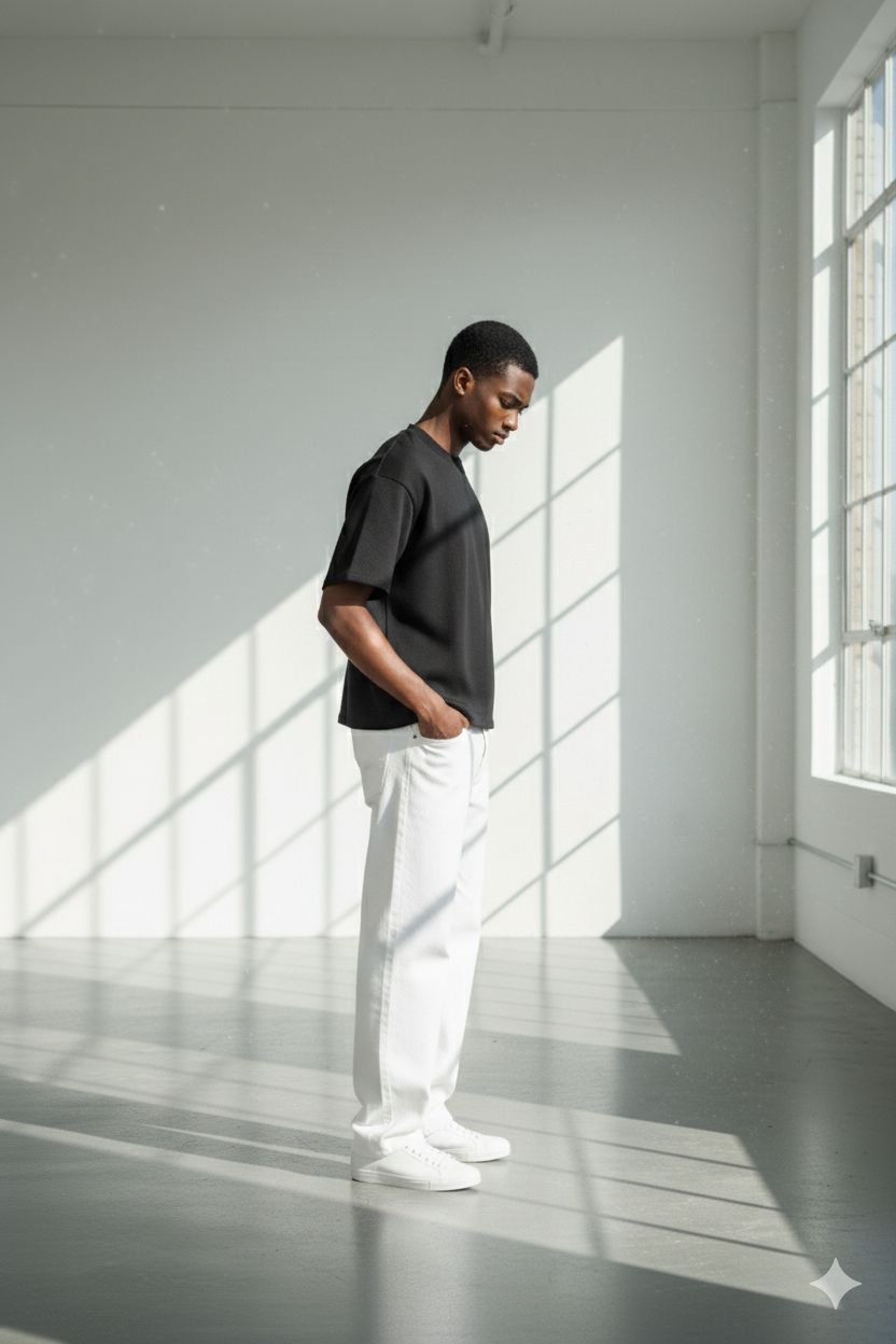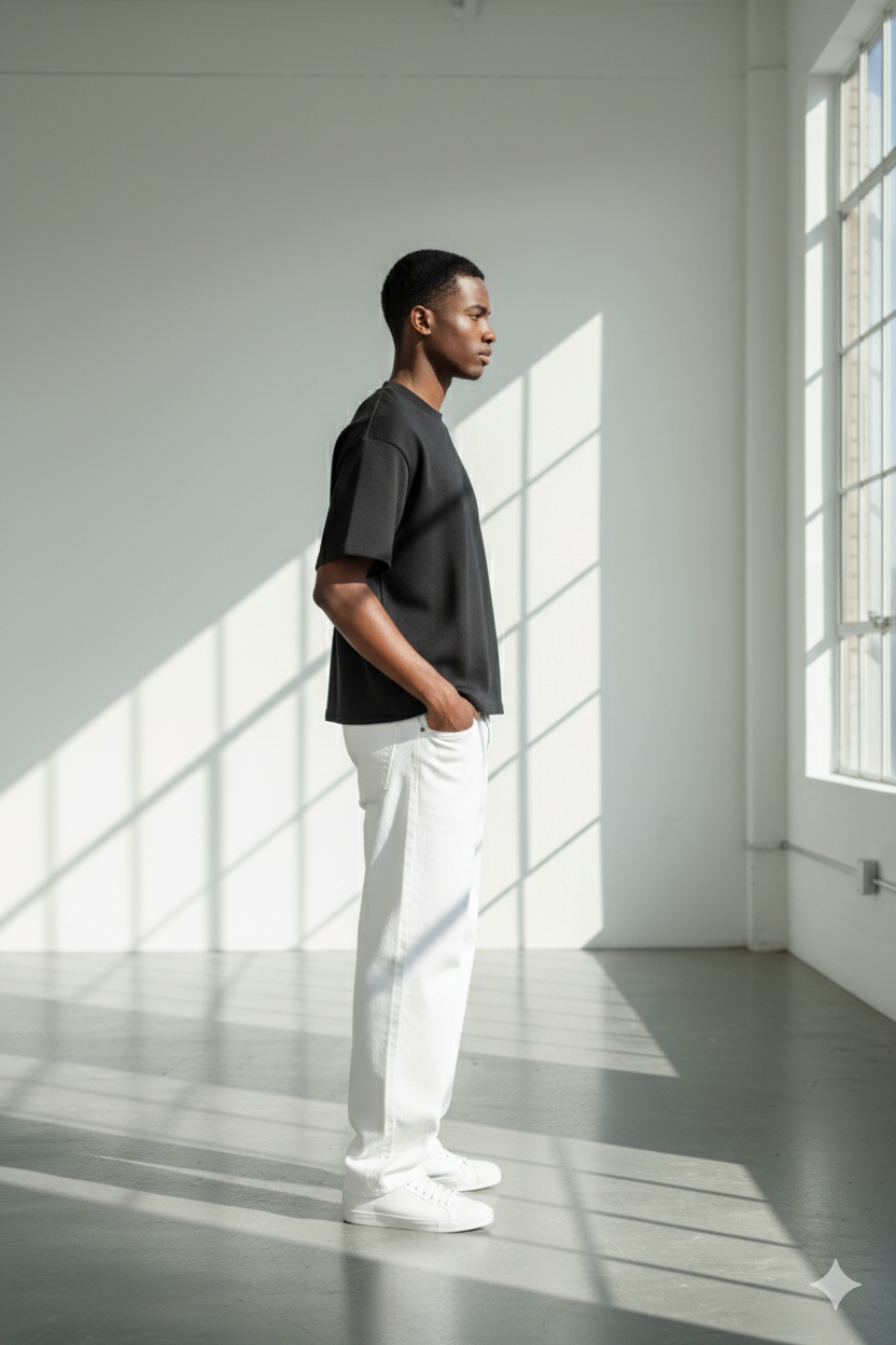 Our BLACK KNIT TEXTURED T-SHIRT is soft and buttery hand feel. The garment features sleeves with a slightly longer drop in order to accentuate the shoulders and add to the oversized fit.