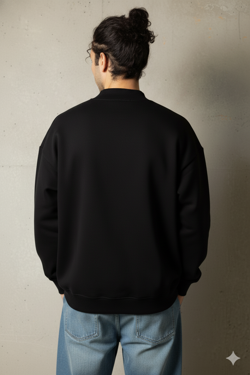A Black Oversized Sweat Shirt built from upgraded 480 GSM heavyweight cotton for a premium feel and lasting durability. Designed with drop shoulders and a relaxed fit, this hoodie balances comfort with a street-inspired silhouette.
