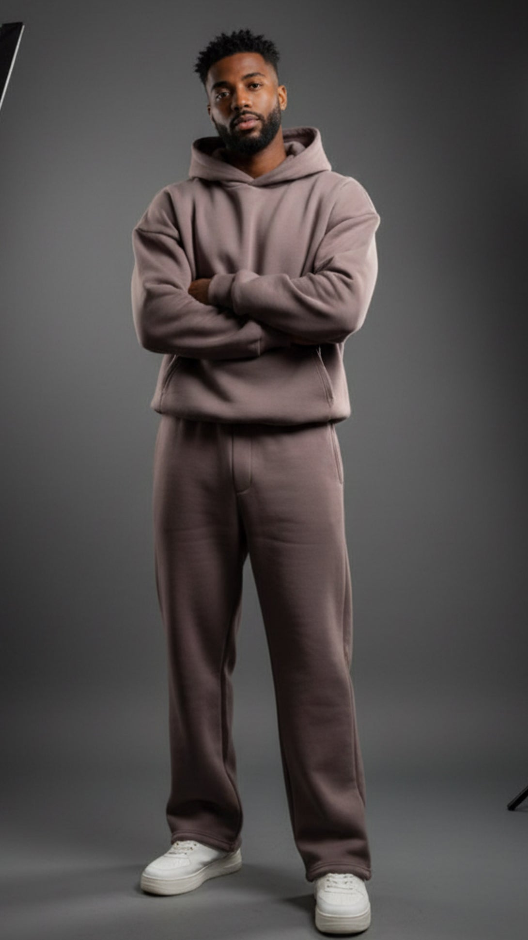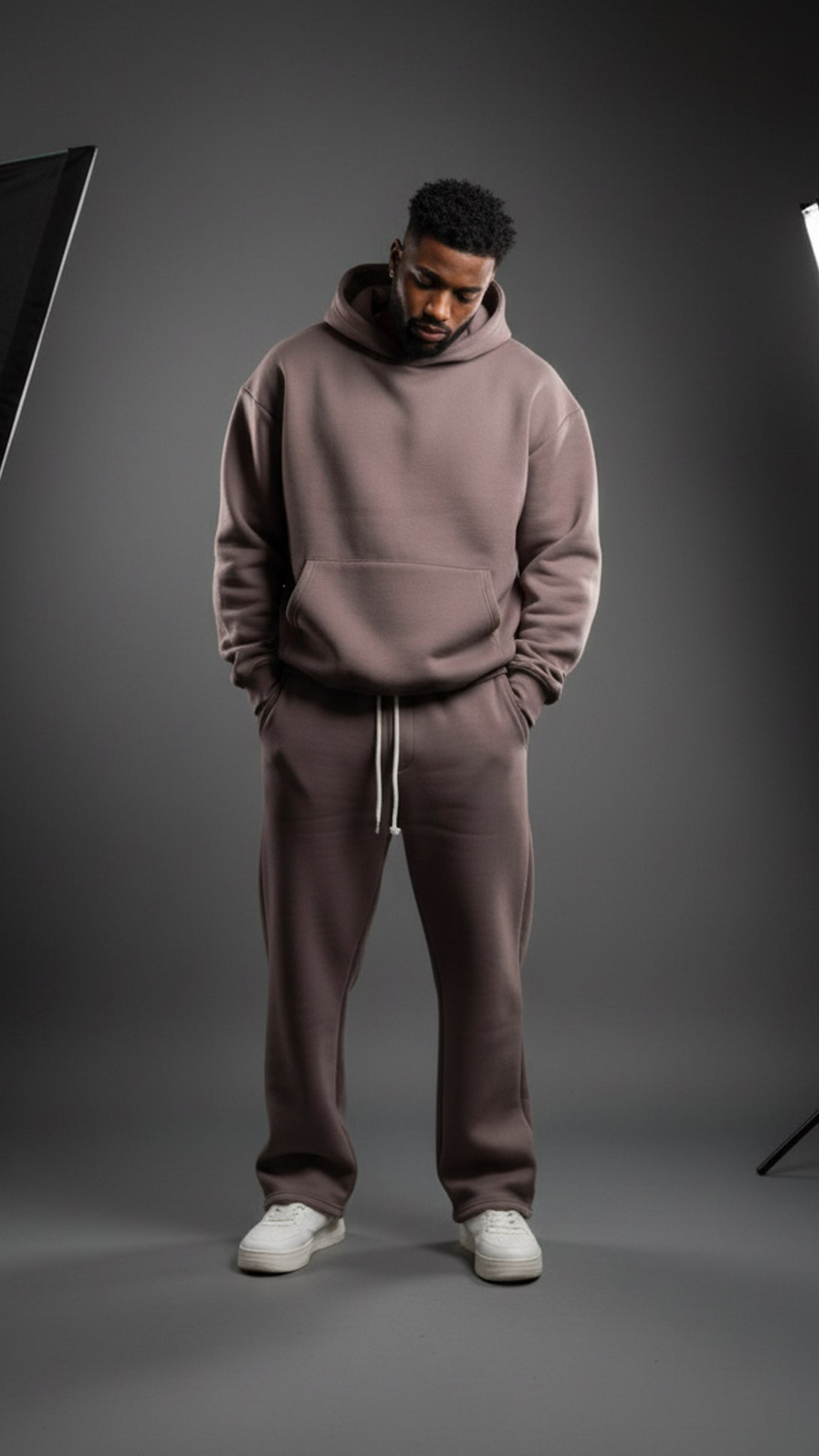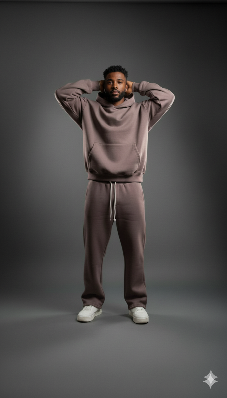 A Warm Grey Oversized Bundle crafted from upgraded 480 GSM heavyweight cotton for a premium feel and lasting durability. Featuring a relaxed, street-inspired silhouette with drop shoulders and baggy sweatpants for a complete look that combines comfort and style.