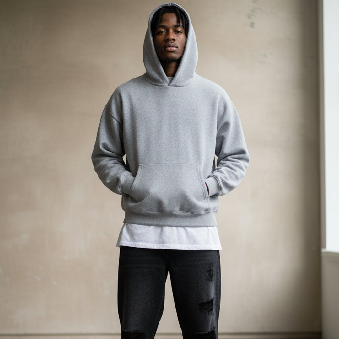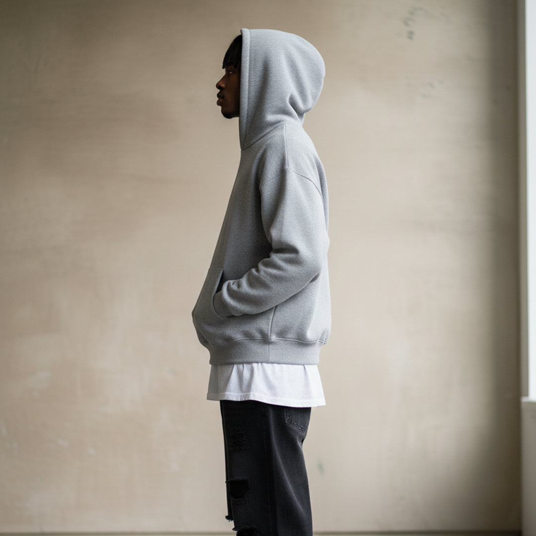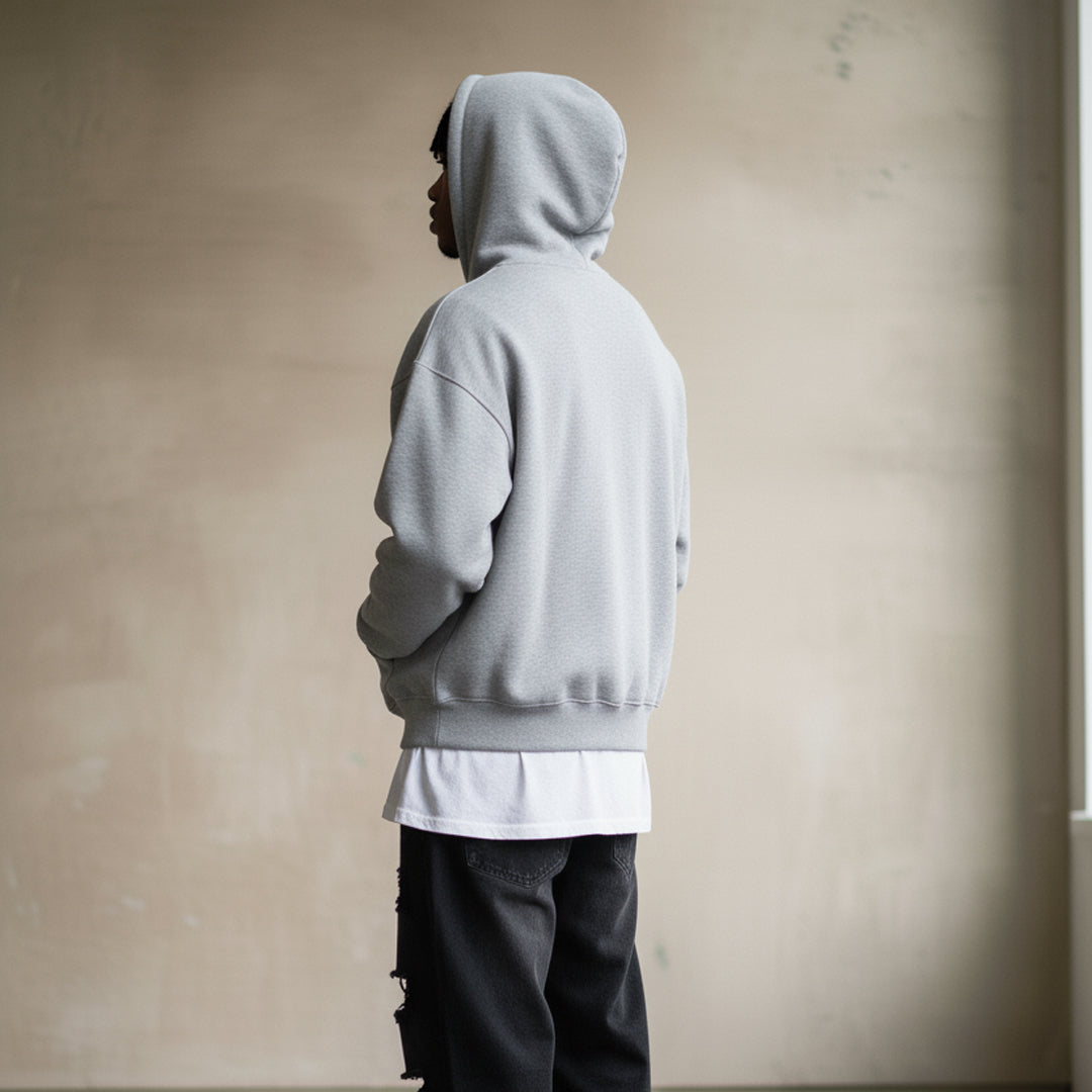 A heavyweight 465 GSM fleece hoodie with structure, body, and an honest build that speaks for itself, not through logos, not through hype, but through the integrity of how it’s made.