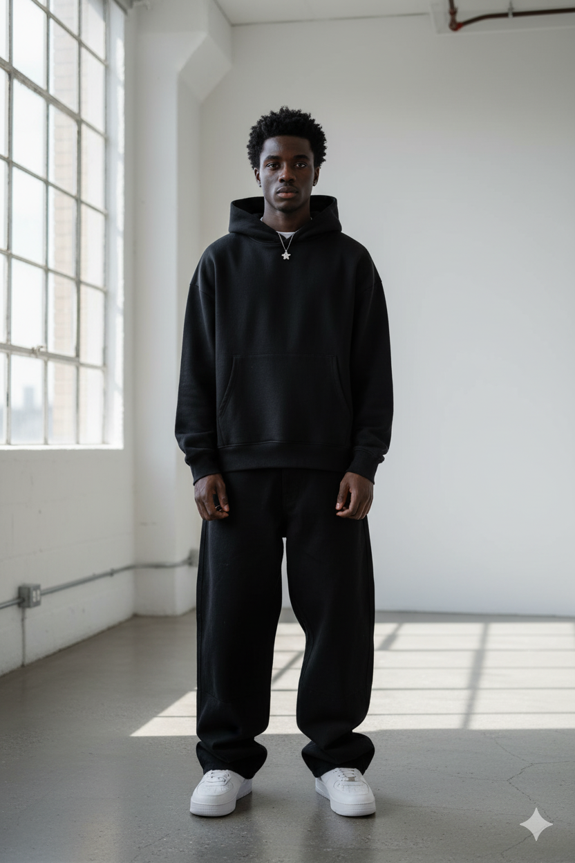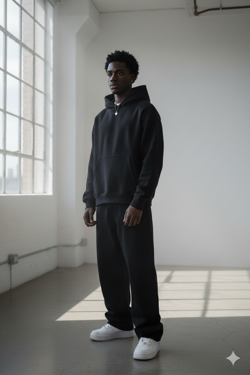 Introducing the ‘MIDNIGHT STEALTH HOODIE ’ refined minimalism, combining modern fits with premium fabric that offer both style and comfort. Crafted from our upgraded 465 GSM diagonal cotton, each piece is crafted with a unique touch, giving the garment its own special appeal.