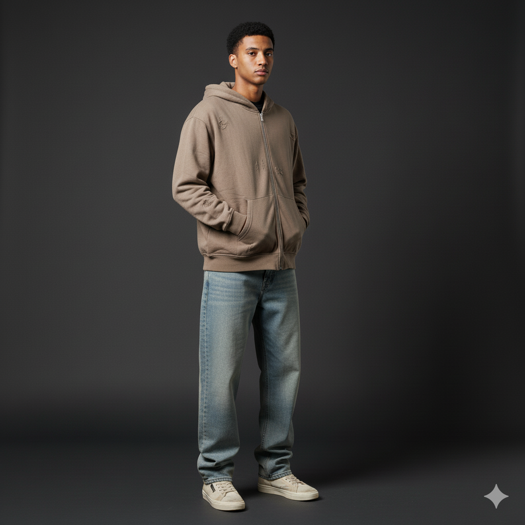 A Shoe Grey Distress Oversized Zipper built from upgraded 480 GSM heavyweight cotton for a premium feel and lasting durability. Designed with drop shoulders and a relaxed fit, this one-of-one distressed piece balances comfort with a street-inspired silhouette.